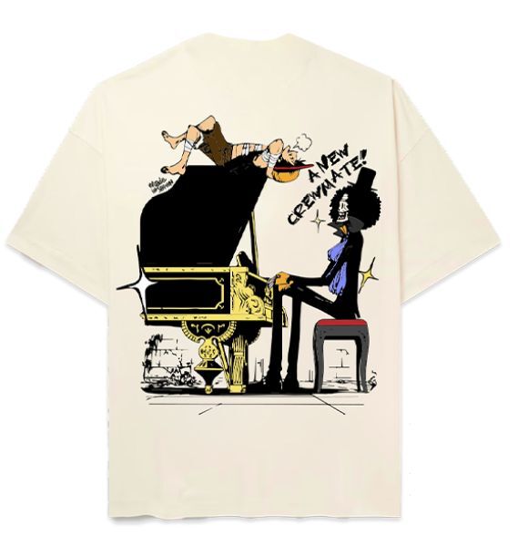 Si eres fan de las historias de piratas, la música y las tripulaciones inigualables, esta camiseta es para ti. Su diseño captura un momento icónico entre un excéntrico músico de sombrero alto y un capitán con un sueño inquebrantable, recordándonos que cada nuevo compañero de viaje es una celebración.
