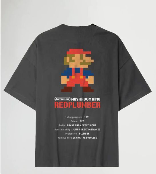 La camiseta REDPLUMBER de MADE IN JAPAN es todo un tributo a ese héroe pixelado que lleva décadas partiendo bloques, esquivando peligros y dando saltos imposibles. Con su inconfundible look rojo, este personaje valiente y aventurero marcó a generaciones enteras desde los salones recreativos hasta las consolas de casa.