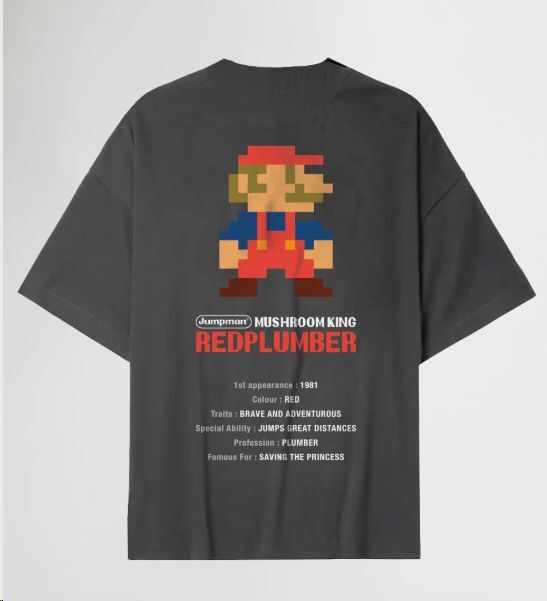 La camiseta REDPLUMBER de MADE IN JAPAN es todo un tributo a ese héroe pixelado que lleva décadas partiendo bloques, esquivando peligros y dando saltos imposibles. Con su inconfundible look rojo, este personaje valiente y aventurero marcó a generaciones enteras desde los salones recreativos hasta las consolas de casa.