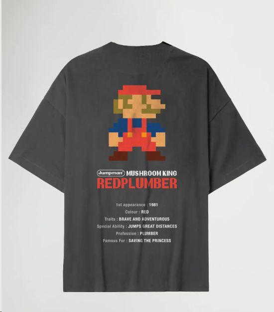La camiseta REDPLUMBER de MADE IN JAPAN es todo un tributo a ese héroe pixelado que lleva décadas partiendo bloques, esquivando peligros y dando saltos imposibles. Con su inconfundible look rojo, este personaje valiente y aventurero marcó a generaciones enteras desde los salones recreativos hasta las consolas de casa.