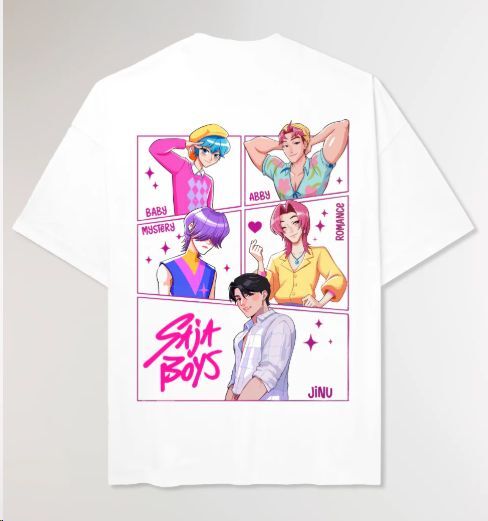 https://comicstores.es/producto/made-in-japan-camiseta-kpdh-star-boys-t-s_596431596431MADE IN JAPAN CAMISETA KPDH STAR BOYS T - SLuce un estilo diferente con esta camiseta Made in Japan, diseñada con un colorido estampado en la parte trasera que reúne a un grupo de cinco personajes ilustrados con estética vibrante y juvenil. Cada figura aparece enmarcada en un recuadro al estilo cómic, destacando por su personalidad y colores llamativos.