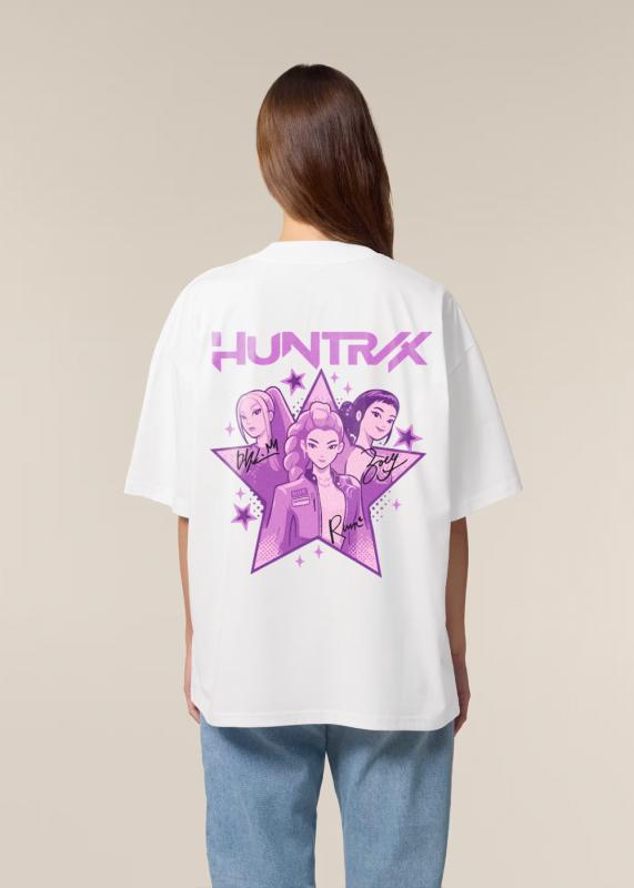 Dale un aire único a tu estilo con esta camiseta Made in Japan, inspirada en un diseño vibrante y lleno de actitud. Con una ilustración a gran escala en la parte trasera, muestra a un trío de personajes enmarcados en una estrella, con detalles en tonos morados y rosas que resaltan sobre el fondo blanco.