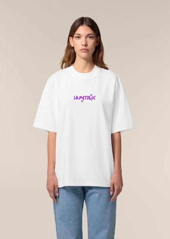 Dale un aire único a tu estilo con esta camiseta Made in Japan, inspirada en un diseño vibrante y lleno de actitud. Con una ilustración a gran escala en la parte trasera, muestra a un trío de personajes enmarcados en una estrella, con detalles en tonos morados y rosas que resaltan sobre el fondo blanco.