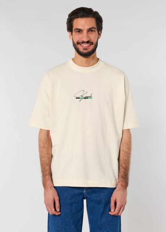 Haz que tu estilo destaque con esta camiseta Made in Japan, diseñada en tono claro y con un impactante estampado en la parte trasera. La ilustración muestra a un personaje con espada en mano en plena pose de batalla, acompañado por grandes caracteres japoneses en color verde que refuerzan su estética poderosa.