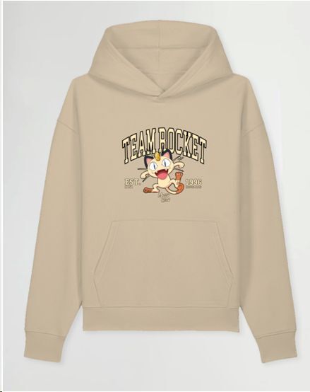 Con un aire nostálgico y rebelde, esta sudadera beige con capucha rinde homenaje a uno de los grupos más traviesos y recordados del mundo de la animación. En el centro, un simpático felino animado posa con actitud, enmarcado por el texto EQUIPO ROCKET y el año de su primera aparición.