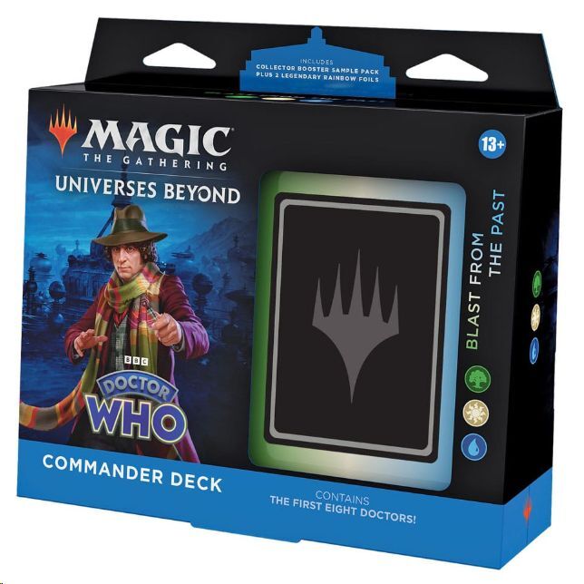 https://comicstores.es/producto/magic-doctor-who-mazo-de-commander-ingles-blast-from-the-past_596321596321MAGIC - DOCTOR WHO MAZO DE COMMANDER INGLES BLAST FROM THE PASTViaja a lo largo y ancho del universo con el Doctor y sus compañeros en la cabina azul (la TARDIS) y ayúdalos a protegerlo contra todo tipo de peligros, o ponte en la piel del villano y pelea por el dominio intergaláctico. En Commander, cuatro jugadores se reúnen para demostrar su fuerza y sus dotes estratégicas... y solo una persona puede alzarse con la victoria. Los mazos de Commander de 100 cartas de Más allá del Multiverso: Doctor Who de Magic: The Gathering están listos para usar, así que los fans de Commander solo tienen que pasarse por tu tienda, hacerse con uno y empezar a jugar.
