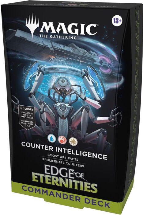 Domina la batalla con precisión mecánica y estrategia avanzada con Counter Intelligence, el mazo de Commander diseñado para quienes controlan el campo de juego a través de artefactos y contadores. En los confines de Sothera, la inteligencia artificial más avanzada ha tomado el control, proliferando contadores y potenciando sus recursos para alcanzar la supremacía en el Multiverso.