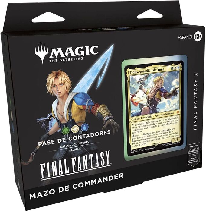 Las olas de Spira chocan contra el multiverso de Magic en un mazo diseñado para los que juegan con astucia, velocidad y trabajo en equipo. Inspirado en FINAL FANTASY X, Pase de Contadores está liderado por Tidus, Yuna’s Guardian, listo para guiar a su equipo con habilidad y determinación.