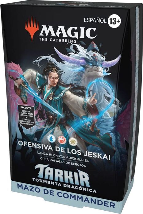 https://comicstores.es/producto/magic-tarkir-dragonstorm-mazo-de-commander-jeskai-azul-rojo-y-blanco-castellano_587840587840MAGIC - TARKIR DRAGONSTORM MAZO DE COMMANDER JESKAI (AZUL, ROJO Y BLANCO) - CASTELLANOEnfréntate a tus amigos con criaturas poderosas y hechizos espectaculares en Commander, el formato para varios jugadores más popular de Magic. Desafía a tus amigos o prueba cada estilo de juego único con los 5 mazos de Tarkir: tormenta dracónica: Armadura de los Abzan, Ofensiva de los Jeskai, Alzamiento de los Sultai, Impulso de los Mardu y Rugido de los Temur.