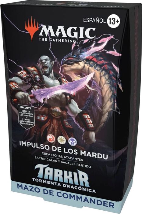 Enfréntate a tus amigos con criaturas poderosas y hechizos espectaculares en Commander, el formato para varios jugadores más popular de Magic. Desafía a tus amigos o prueba cada estilo de juego único con los 5 mazos de Tarkir: tormenta dracónica: Armadura de los Abzan, Ofensiva de los Jeskai, Alzamiento de los Sultai, Impulso de los Mardu y Rugido de los Temur.