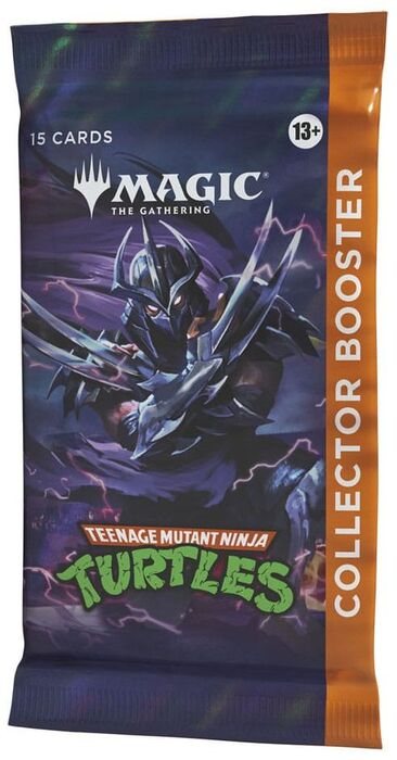 15 cartas de Magic: The Gathering Puede contener las siguientes cartas: 1 a 190 y 196 a 314 de TMT; 1 a 97 de TMC; 1 a 20 de PZA Entre 0 y 3 cartas surge foil Entre 9 y 12 cartas foil tradicionales 5 cartas raras o de una rareza superior 3 o 4 cartas poco comunes 5 o 6 cartas comunes 1 carta de tierra Hay una carta de estrella principal sin borde con la firma de Kevin Eastman en menos del 1 % de los sobres