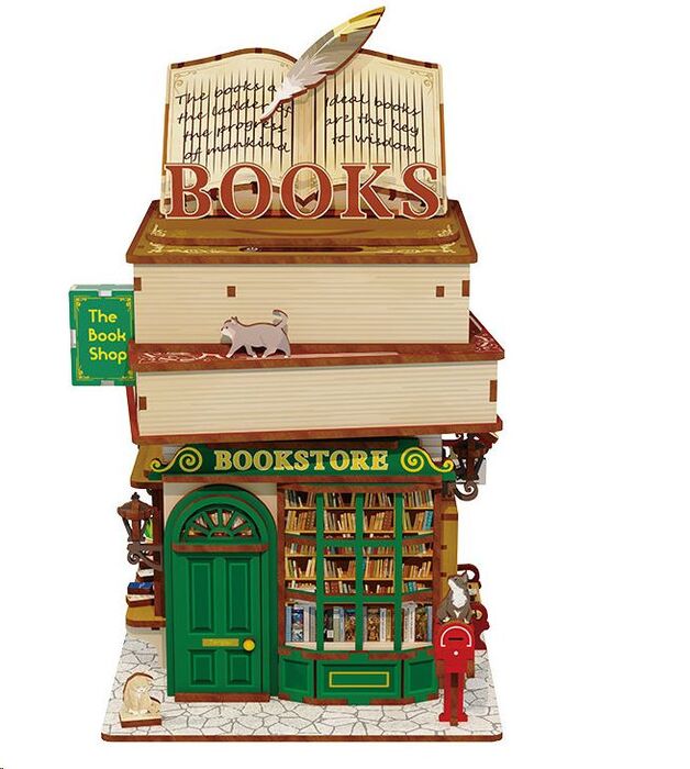Esta maqueta con luz presenta una librería llena de encanto, diseñada en formato tridimensional y con un compartimento secreto que añade un toque de sorpresa y complicidad a su estética. Cada estante, libro y elemento decorativo está cuidadosamente elaborado para transmitir la calidez y la magia de un rincón literario acogedor.