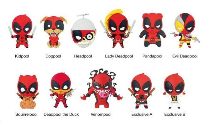 La colección más divertida de Deadpool llega a lo grande! Estos colgantes de PVC , que también puedes usar como llaveros, presentan 11 modelos diferentes de Deadpool, versiones incluyendo Kidpool, Dogpool, Venompool y más.
