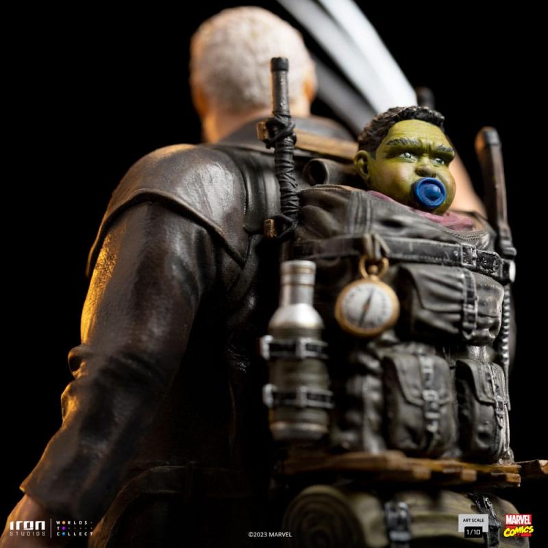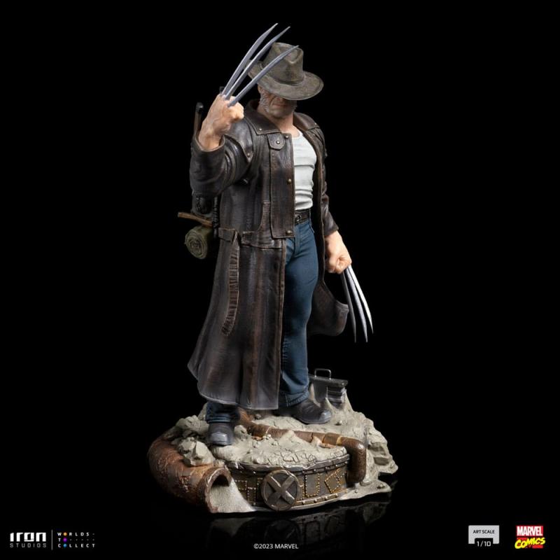 En un futuro potencial donde los enemigos han prevalecido y la mayoría de sus aliados han perecido, Logan, ahora un viejo guerrero mutante, no puede dejar atrás su traumático pasado. Vuelve a desenvainar sus garras en busca de venganza y justicia, decidido a eliminar a todos los villanos y traer paz a la Tierra. La estatua lo muestra en una base que representa el árido territorio conocido como Hulkland, en una misión mientras lleva una mochila. Viste botas con punta de acero, un abrigo de cuero sobre una camisa desgastada y pantalones vaqueros, y cubre su cabeza con un gran sombrero.