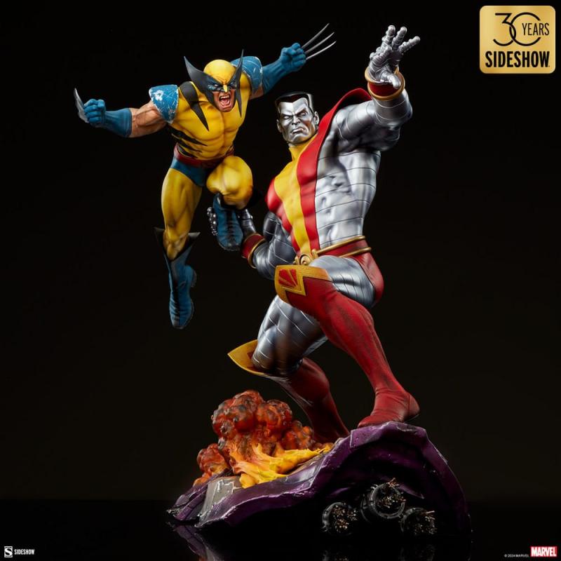 Cada figura ha sido meticulosamente esculpida y pintada a mano, asegurando que cada detalle, desde los músculos definidos de Coloso hasta la feroz determinación en el rostro de Wolverine, sea presentado con la mayor fidelidad. Esta atención al detalle no solo captura la esencia de los personajes, sino que también brinda a los coleccionistas una pieza de arte que rinde homenaje a los momentos más memorables de Marvel.