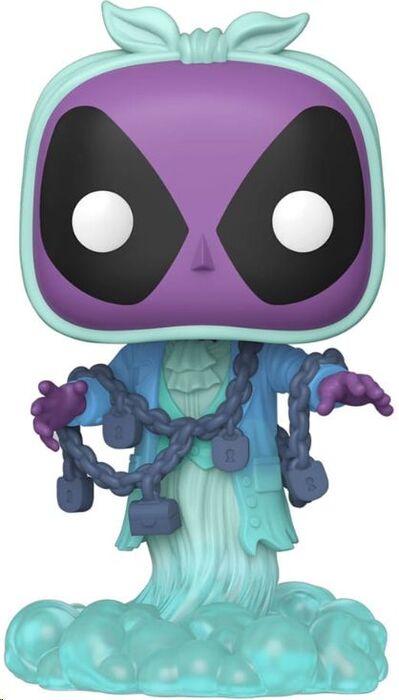Deadpool viaja al mundo de los fantasmas con esta figura Pop! Plus de 9 cm en la que interpreta a Jacob Marley, el espectro encadenado de *Cuento de Navidad*. Con su rostro morado espectral, cadenas llenas de candados y una túnica flotante, esta versión fantasmal del mercenario bocazas mezcla el humor de Marvel con el clásico navideño de Charles Dickens.