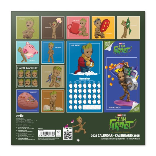 https://comicstores.es/producto/marvel-yo-soy-groot-marvel-yo-soy-groot-cm_578101578101MARVEL YO SOY GROOT MARVEL YO SOY GROOT CMDe Enero de 2025 a Diciembre 2025. Mide 29,5 x 29,5 cm, con encuadernación grapada. Contiene 12 imágenes y un póster en su interior. Incluye agujero de 5 mm para colgar en la pared. Las cubiertas son de papel de 250 g/m² estucado mate y laminado, el interior es de papel de 150 g/m² estucado mate. Idiomas: inglés, español, francés, italiano, alemán y portugués. Se presenta en un sobre de cartulina gráfica de 300 g/m² de 30 x 30 cm. https://comicstores.es/imagenes/8435747/843574780532.JPG10.4010.955.000.55