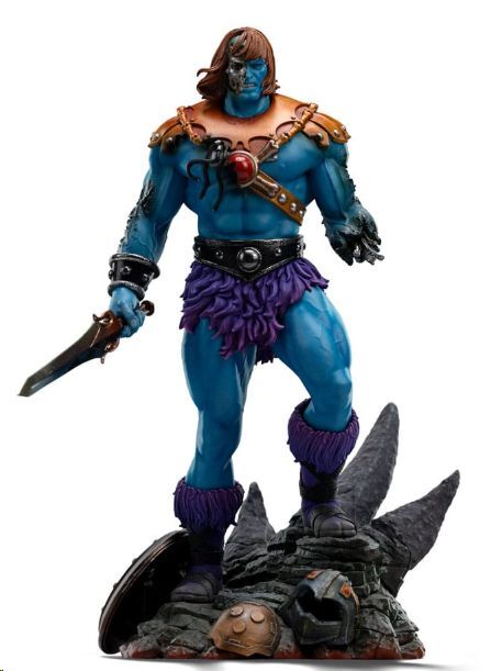 El duplicado malvado de He-Man cobra forma! Esta estatua de Faker a escala 1/10 mide aprox. 22 cm y está fabricada en poliresina con licencia oficial de Masters of the Universe. Su piel azulada, su armadura robótica y su espada oscura lo hacen inconfundible en cualquier colección.