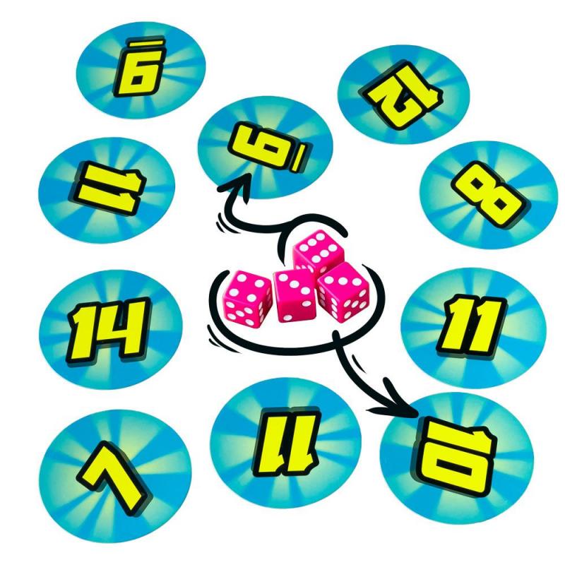 Se despliegan 10 cartas en la mesa, se lanzan los dados