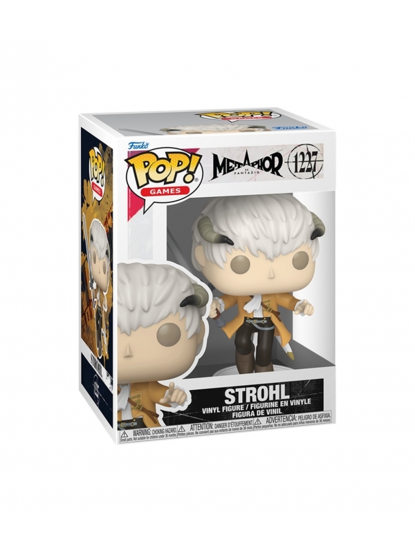 Figura de vinilo de la línea POP! Games que presenta a Strohl, uno de los personajes del universo Metaphor: ReFantazio, con un diseño que destaca por su estética fantástica y su aire aventurero. Su vestimenta y arma reflejan su papel dentro de la historia, aportando personalidad a la pieza.