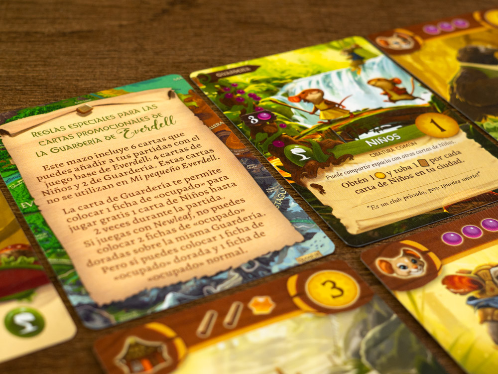 Juego de colocación de trabajadores y desarrollo de tableros Muy fácil de aprender Ideal para niños y familias Incluye cartas promocionales "La Guardería de Everdell"