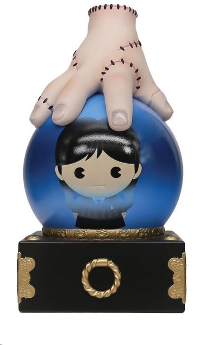 Guarda tus monedas con un toque misterioso gracias a esta hucha de PVC inspirada en la icónica mano de la serie Miércoles. Su diseño detallado recrea a la perfección a este inseparable compañero, convirtiéndola en una pieza llamativa que no pasa desapercibida en cualquier rincón.