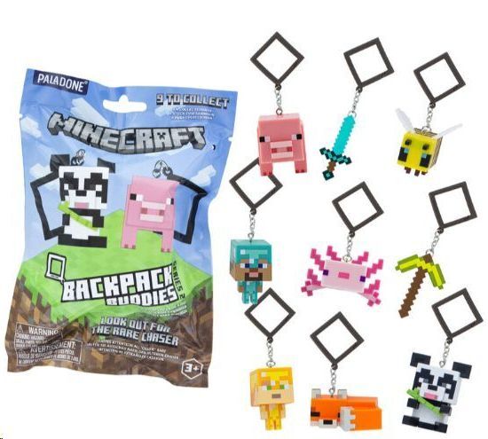 Llega la Serie 2 de los Backpack Buddies de Minecraft en formato llavero 3D de PVC! Cada sobre sorpresa incluye uno de los 9 modelos diferentes, con personajes y objetos icónicos del juego como Steve, el panda, la abeja, un axolotl o la espada de diamante.