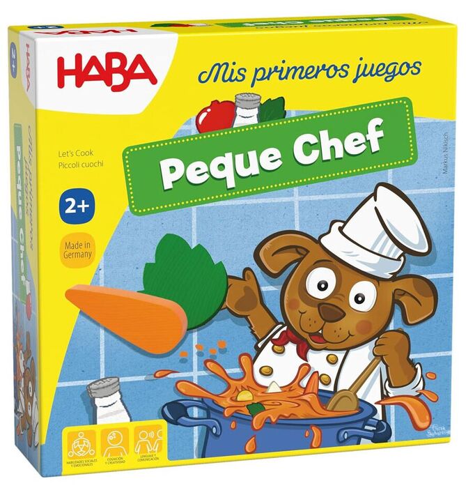 https://comicstores.es/producto/mis-primeros-juegos-peque-chef_546162546162MIS PRIMEROS JUEGOS. PEQUE CHEFUn primer juego acerca de alimentos, con tres variantes con las que reconocer y designar alimentos, adivinar los ingredientes o memorizar componentes de una receta. Incluye cuchara de madera y la caja se convierte en una estupenda olla en la que preparar los guisos más sabrosos.
