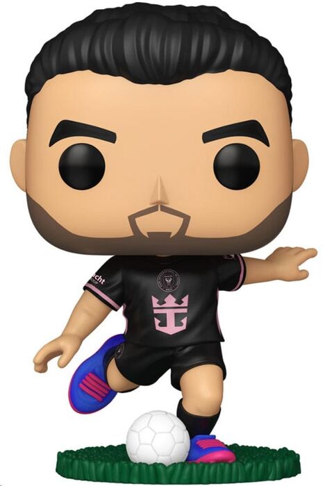Añade a tu colección la figura Pop! Sports de Sergio Busquets en el Inter Miami. Este coleccionable de 9 cm muestra al mediocampista español con el uniforme negro y rosa del equipo, listo para distribuir el balón con su estilo inconfundible. Su pose captura la esencia de su juego, combinando inteligencia táctica y elegancia en el campo.
