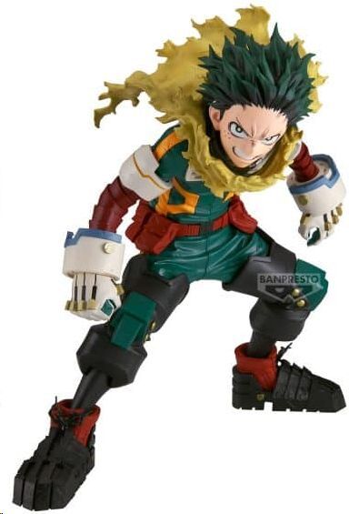 Con una altura aproximada de 22 cm, la figura destaca por su nivel de detalle en cada parte del traje, desde las texturas de las protecciones hasta los pliegues de la ropa. La postura de combate da sensación de movimiento y acción, como si Deku estuviera a punto de desatar su poder del One For All. Es una pieza que capta toda la energía del personaje en plena batalla.