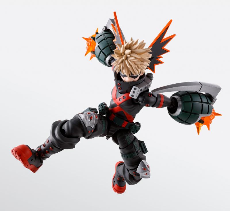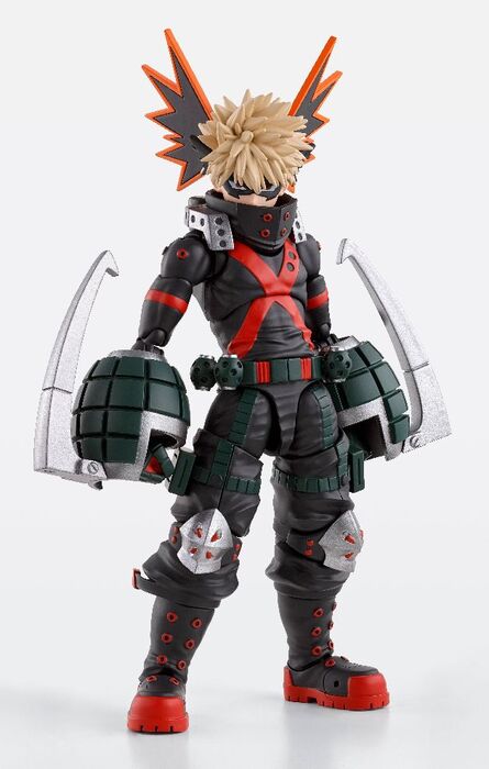 Tamashii Nations presenta, dentro de la colección S.H. Figuarts, la figura de Katsuki Bakugo, inspirada en su aparición en el popular anime My Hero Academia. Esta figura mide aproximadamente 14,5 cm y captura con precisión los detalles del diseño heroico de Bakugo, incluyendo su icónico traje de héroe con las grandes granadas en los brazos.