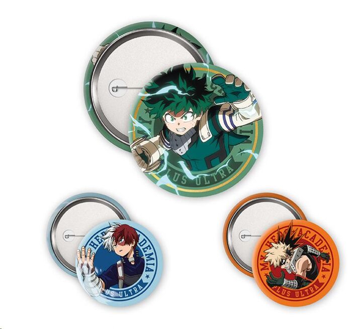 Después de entrenar bajo la estricta guía de Endeavor, los héroes más prometedores de la UA están listos para la acción. Este set de insignias de My Hero Academia de ABYstyle te permite llevar contigo a Midoriya, Bakugo y Todoroki mientras enfrentan nuevos desafíos y villanos.