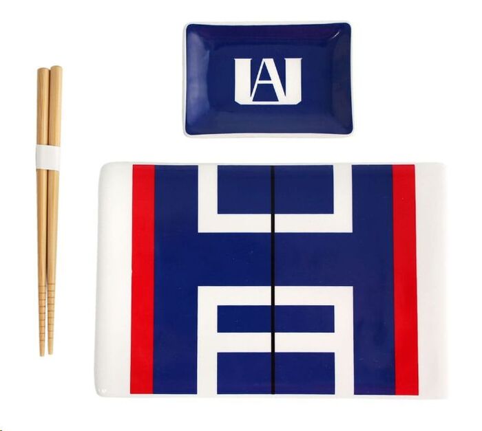 MY HERO ACADEMIA SET DE PLATOS + PALILLOS DE SUSHI DE CERÁMICA UA