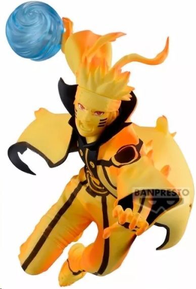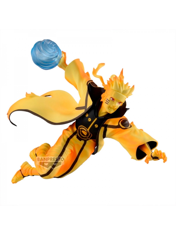 Fabricada por Banpresto, esta figura destaca por su calidad y acabados detallados. El degradado de colores en su vestimenta y la fluidez de su capa brindan un efecto visual impactante, mientras que el Rasengan transparente añade un toque especial a la escena. La combinación de tonos dorados y negros refuerza la intensidad del Modo Kyubi, dándole un aspecto imponente y fiel al anime.