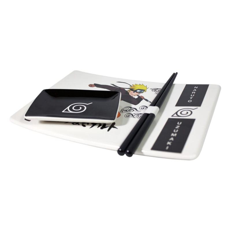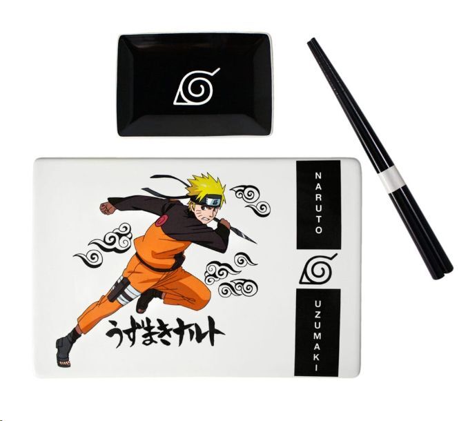 NARUTO SHIPPUDEN PLATOS + PALILLOS DE SUSHI DE CERÁMICA NARUTO UZUMAKI