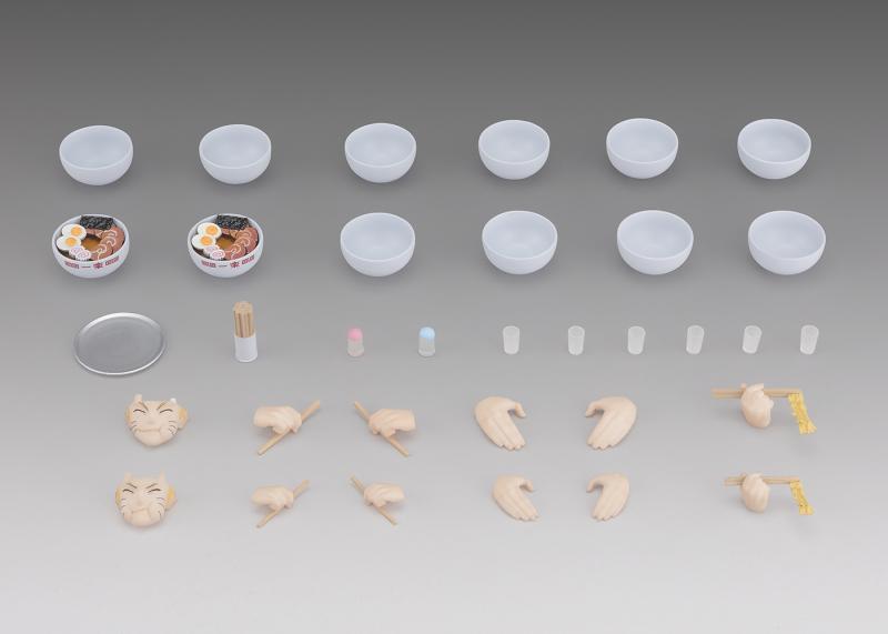 Ideal para utilizar como escenario para las figuras de "Naruto: Shippuden", este conjunto incluye una impresionante variedad de accesorios para hacer cualquier diorama vivir: 10 cuencos vacíos, 2 cuencos de ramen llenos, 1 bandeja, 1 bote con palillos, 6 vasos vacíos, 2 vasos con bebida, además de 2 placas faciales, 4 pares de manos con palillos, 4 pares de manos extra, y 2 manos sujetando palillos con comida. Cada pieza ha sido diseñada con atención al detalle, permitiendo a los fanáticos recrear escenas de comidas en Ichiraku Ramen con un realismo nunca antes visto.