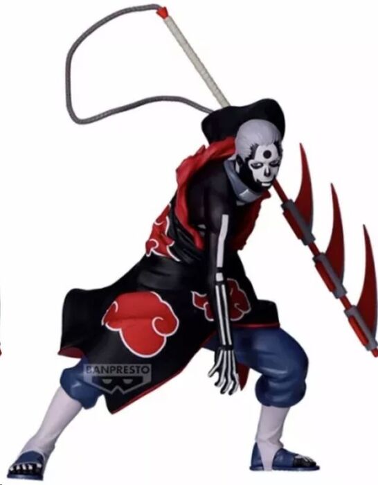 Cada detalle ha sido cuidadosamente esculpido, desde los patrones de su túnica de Akatsuki hasta la textura de su arma y el realismo en su rostro pintado con los símbolos de su ritual. La pintura de alta calidad resalta los contrastes entre los tonos oscuros de su vestimenta y los detalles rojos de su guadaña, logrando un acabado fiel a su diseño en el anime. La pose agresiva refuerza su esencia de guerrero inmortal, listo para el combate.