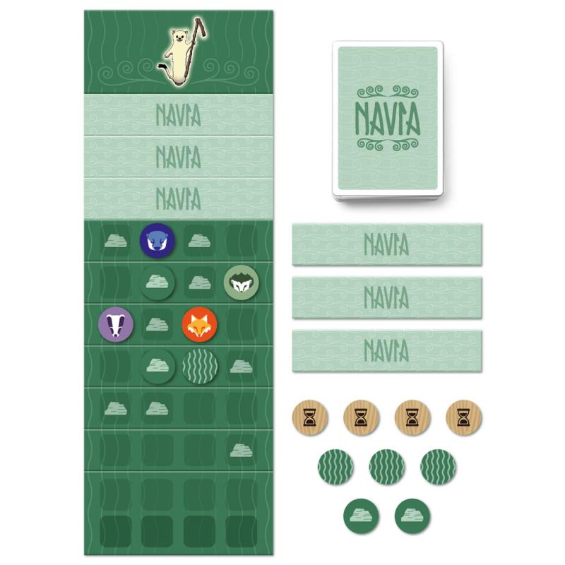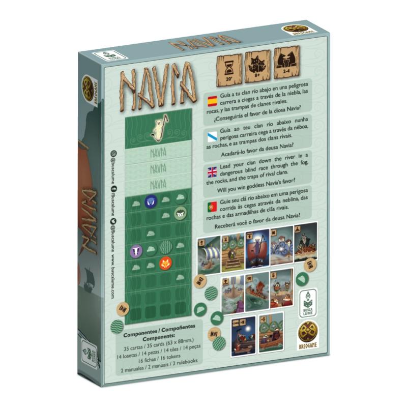Cada año, cuando las nieves se derriten y el río se vuelve salvaje, los clanes del bosque se baten por el dominio sobre el río y la bendición de la diosa Navia. Lidera el barco de tu clan, sabotea, roba y engaña. Todo vale para ser el clan que gobernará el bosque este año. Navia es un alocado juego de carreras de barcos con mecánicas de carreras, gestión de mano, y mucha interacción. Muy fácil de aprender y de jugar, te dará partidas rápidas y adictivas.