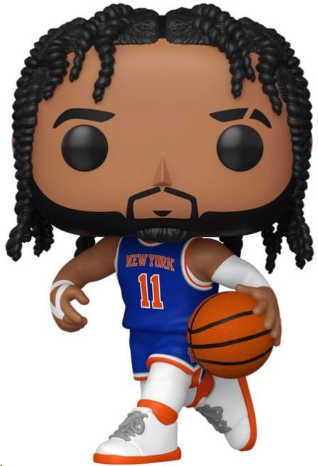 Cada detalle está cuidado al máximo, desde las trenzas hasta las zapatillas deportivas personalizadas, pasando por el dorsal 11 y los colores clásicos azul y naranja del equipo neoyorquino. Su postura dinámica y su expresión decidida lo convierten en una figura perfecta para cualquier fan de la NBA.