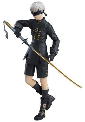 La figura de 9S (YoRHa No. 9 Type S) perteneciente a la línea Pop Up Parade presenta al androide de Nier\:Automata Ver.1.1a con una pose relajada pero elegante, sosteniendo su katana con actitud calmada. Su diseño reproduce fielmente el uniforme negro con detalles dorados, las hebillas, los botones y su icónico visor, transmitiendo a la perfección la esencia de este personaje complejo y carismático.