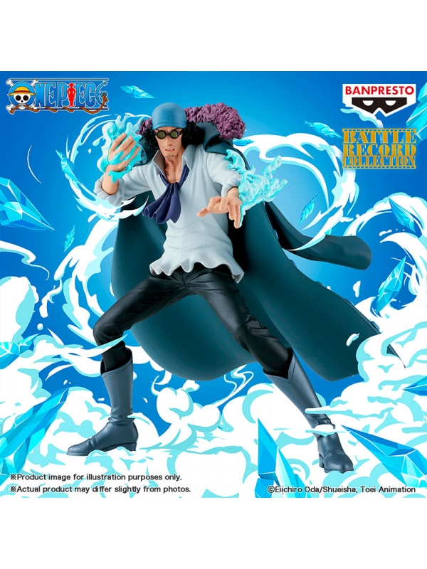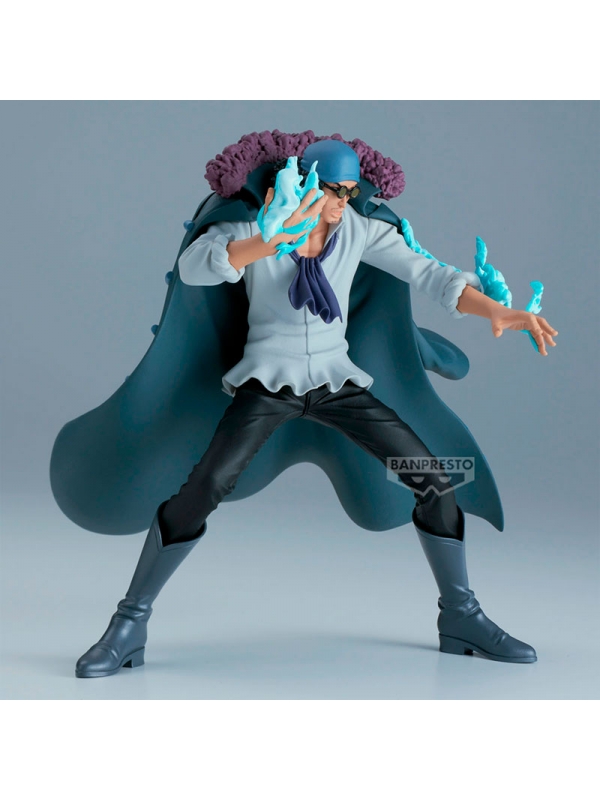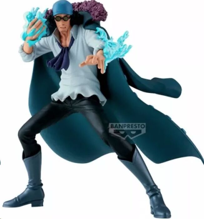 Kuzan, el antiguo almirante de la Marina, se presenta en esta impresionante figura de la línea Battle Record Collection de Banpresto. Con una altura de 15 cm, esta pieza captura su poderosa presencia con una pose de combate imponente. Su expresión seria y la fluidez de su capa al viento reflejan la esencia del formidable usuario del Hie Hie no Mi en el universo de One Piece.