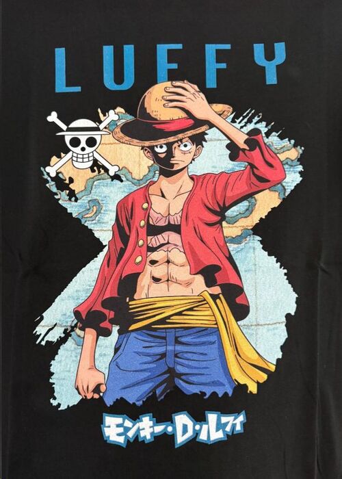 ¡Haz que tu lado más pirata se note con esta camiseta de Monkey D. Luffy! Con un diseño potente y colorido, muestra al capitán del Sombrero de Paja en una pose icónica, sobre un fondo de mapa que evoca las aventuras en el Grand Line. No falta el emblema de su tripulación, con la clásica calavera con sombrero de paja. Confeccionada en algodón cómodo y resistente, esta camiseta es ideal tanto para el día a día como para tus quedadas otakus. Disponible en tiendas físicas Comic Stores, Freak Point y en nuestra web. ¡El tesoro te espera!