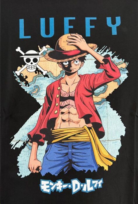 ¡Haz que tu lado más pirata se note con esta camiseta de Monkey D. Luffy! Con un diseño potente y colorido, muestra al capitán del Sombrero de Paja en una pose icónica, sobre un fondo de mapa que evoca las aventuras en el Grand Line. No falta el emblema de su tripulación, con la clásica calavera con sombrero de paja. Confeccionada en algodón cómodo y resistente, esta camiseta es ideal tanto para el día a día como para tus quedadas otakus. Disponible en tiendas físicas Comic Stores, Freak Point y en nuestra web. ¡El tesoro te espera!