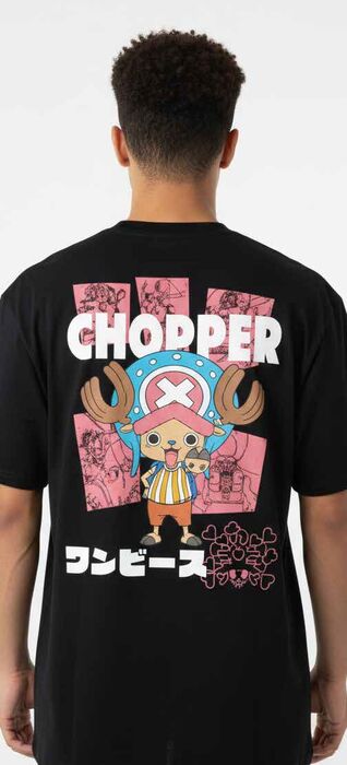 Luce tu pasión por One Piece con esta camiseta men oversize de Chopper en color negro, protagonizada por un gran diseño trasero lleno de color y detalles inspirados en el entrañable médico de la tripulación. El estampado combina ilustraciones, tipografía llamativa y gráficos en tonos rosa que hacen que destaque desde cualquier ángulo.