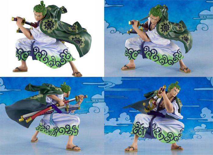 Tamashii Nations presenta sus dinámicas figuras dentro de la popular serie FiguartsZERO de tus personajes favoritos de One Piece. Otro de los primeros personajes de esta línea es Roronoa Zoro, conocido en el País de Wano como Zorojuro. Esta figura mide unos 11cm e incluye una base de soporte para su exposición.