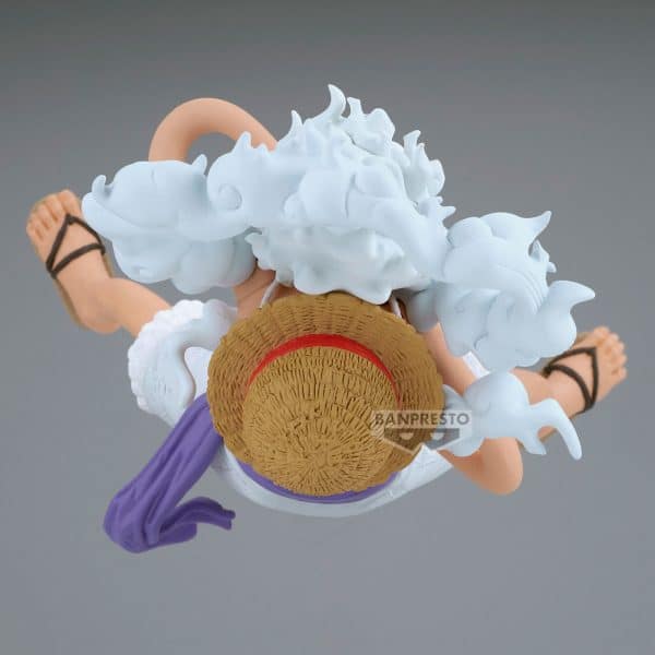 Con una altura aproximada de 20 cm, la figura de la línea King of Artist destaca por su dinamismo y por el nivel de detalle en cada rasgo. Desde las arrugas de la ropa hasta la textura del pelo y las nubes que lo rodean, todo está cuidado para transmitir el estilo único del Gear 5. El acabado transmite tanto la fuerza como la diversión que caracteriza a este nuevo poder de Luffy.