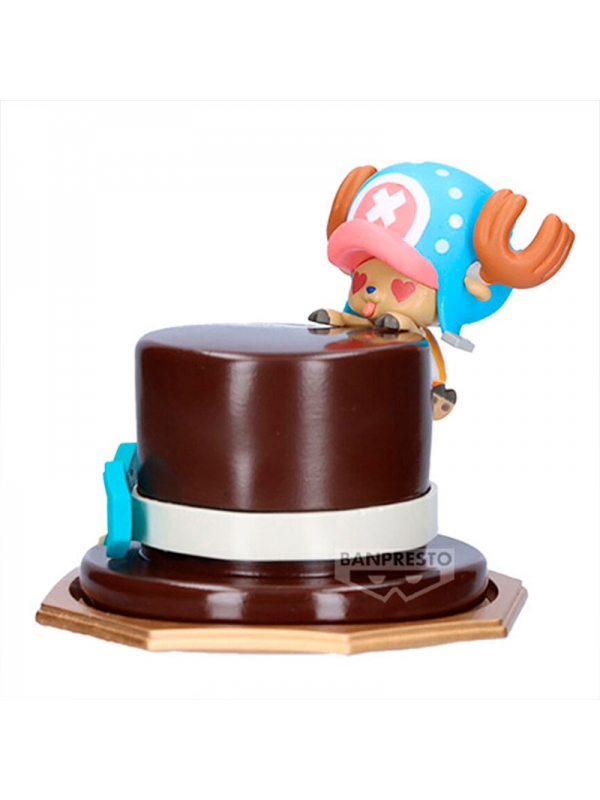 Tony Tony Chopper vuelve a la colección Paldolce Collection Vol. 4 con una encantadora figura de 6 cm llena de ternura y detalles vibrantes. En esta versión, Chopper luce su característico casco azul con lunares blancos y un dulce rubor en sus mejillas mientras se asoma tímidamente sobre un pastel de chocolate con acabado brillante. Su expresión adorable y su pose lo hacen una pieza irresistible para cualquier fan de One Piece.