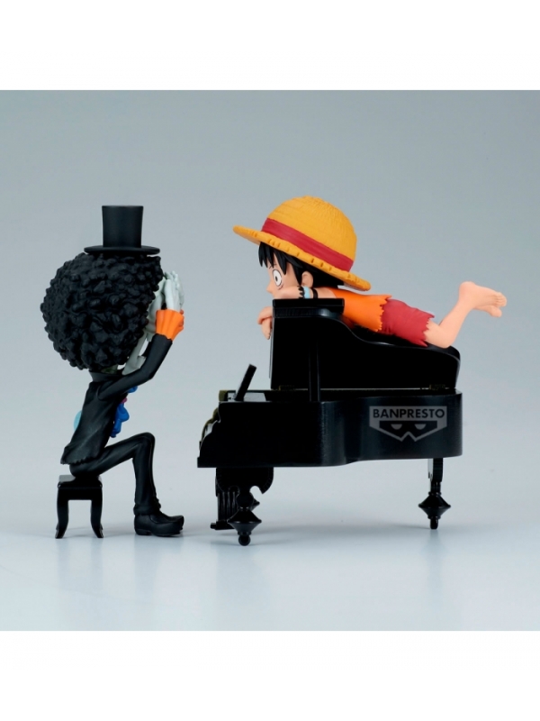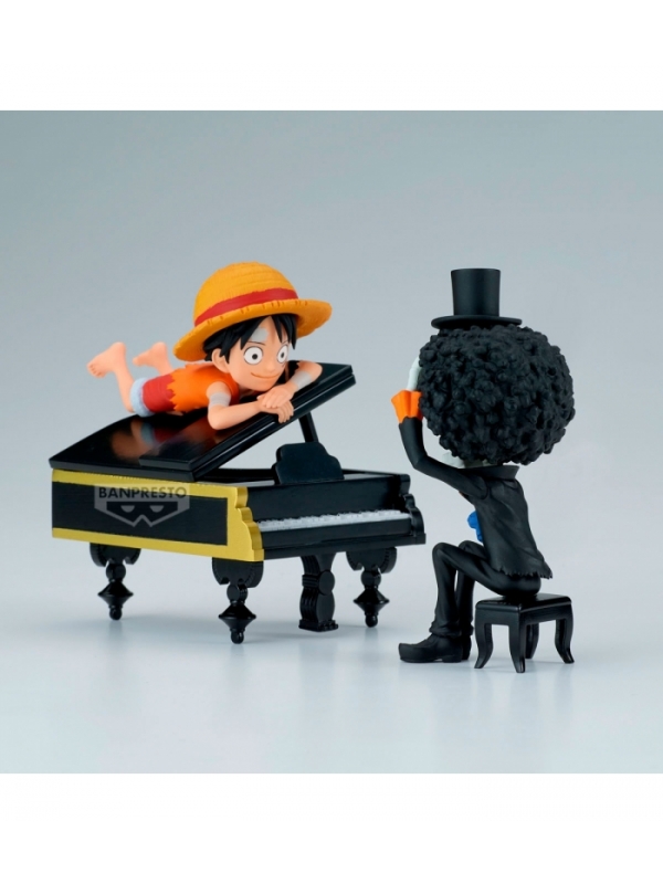 Revive uno de los momentos más emotivos y musicales de One Piece con esta figura de Monkey D. Luffy & Brook de la colección WCF Log Stories. Fabricada por Banpresto, esta escena en miniatura mide 8 cm e incluye el icónico piano que acompaña a Brook. Un diseño cuidado y lleno de sentimiento que captura la esencia de la tripulación más divertida del anime.