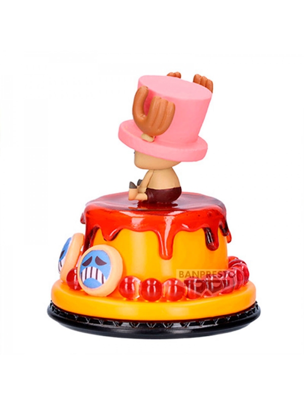 El nivel de detalle en esta figura es impresionante a pesar de su pequeño tamaño. El pastel en el que se encuentra Chopper presenta un glaseado brillante con un efecto de goteo, mientras que las decoraciones laterales con calaveras sonrientes y frutos rojos aportan un toque divertido. La pintura vibrante y los acabados pulidos realzan cada aspecto de la figura, haciéndola destacar dentro de la colección.