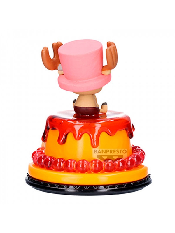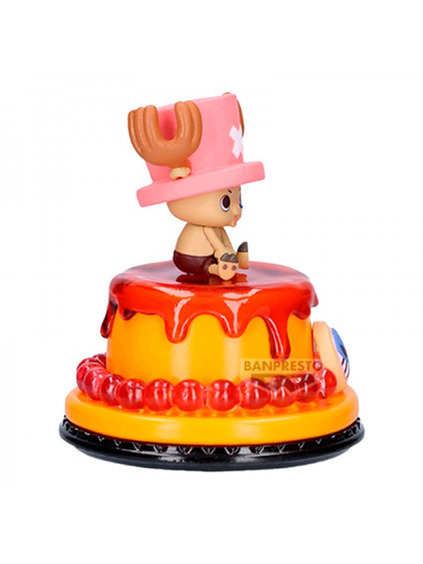 Tony Tony Chopper se suma a la colección Paldolce Collection Vol. 4 con una adorable figura de 6 cm que combina su ternura con un diseño temático de dulces. Sentado sobre un pastel decorado con detalles inspirados en One Piece, este Chopper luce su característico sombrero rosa y una expresión alegre que lo hace aún más encantador. Su tamaño compacto la convierte en una pieza perfecta para exhibir en cualquier rincón.